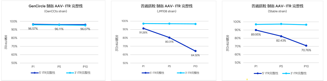 比较GenCircle™ dsDNA和普通质粒作为AAV包装质粒,传代过程中ITR区域稳定性