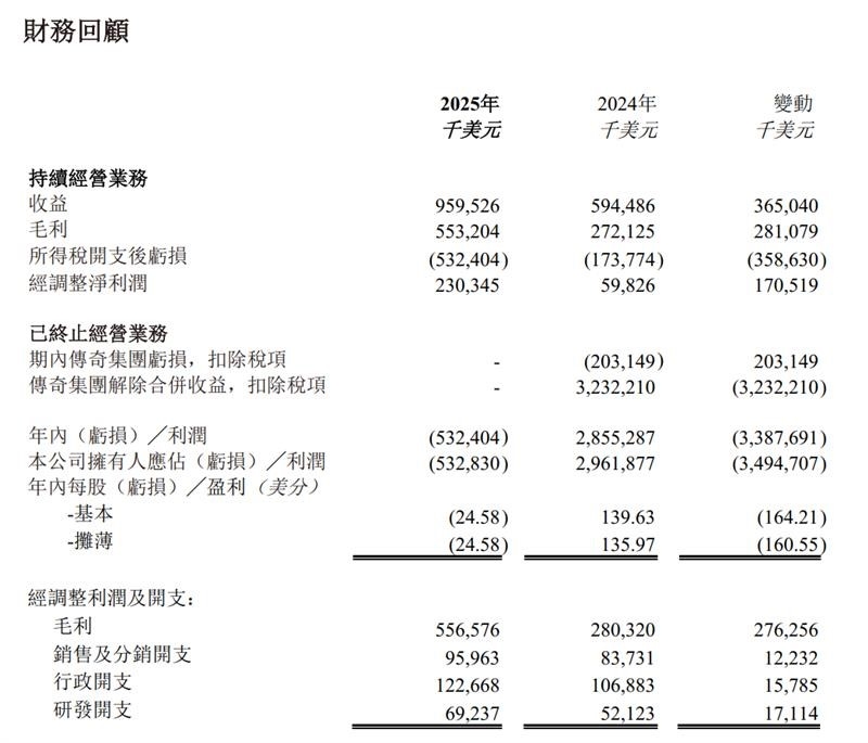 2025年,金斯瑞持续经营业务收入约959.5百万美元,同比增长61.4%。毛利增长103.3%至553.2百万美元。持续经营业务经调整净利润约230.3百万美元,同比增长285.0%。公司三大业务板块均实现了增长,运营效率持续提升,进一步巩固了长期发展的财务基础。