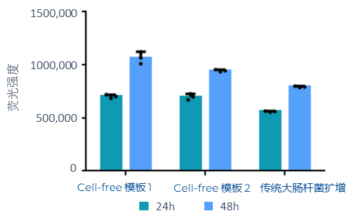 图7: Cell-Free DNA模板与传统质粒模板合成的IVT mRNA在mCherry表达水平上的比较